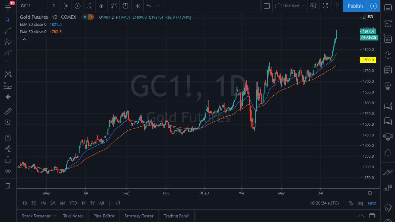 With that being said, you certainly need to pay attention to the US dollar in general, and if it continues to struggle, we will more than likely see the gold markets continue to go much higher. The $2000 level above is the target, but it may take a little bit of time to get there. With that in mind, I am a buyer of dips as I recognize there are plenty of support levels underneath that will eventually be tested, and even if we went higher tomorrow, I would be a bit cautious about going long. Eventually, gravity comes back into play and we get a bit of an opportunity to buy gold at a lower level.