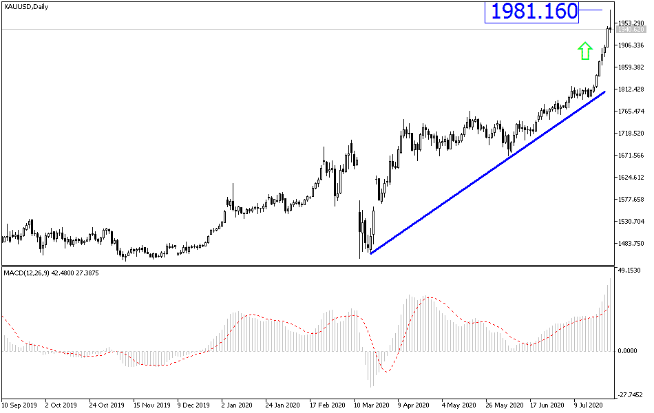 Non-stop gains distinguishes the gold performance in the last period on Tuesday morning, the price of an ounce of gold reached $1981, the highest ever, before settling around the $1936 an ounce. Contributing to those gains was the dollar's drop to a two-year low amid escalating tensions between the United States and China and optimism about more stimulus from the Federal Reserve. The Fed will announce its latest monetary policy decision on Wednesday.