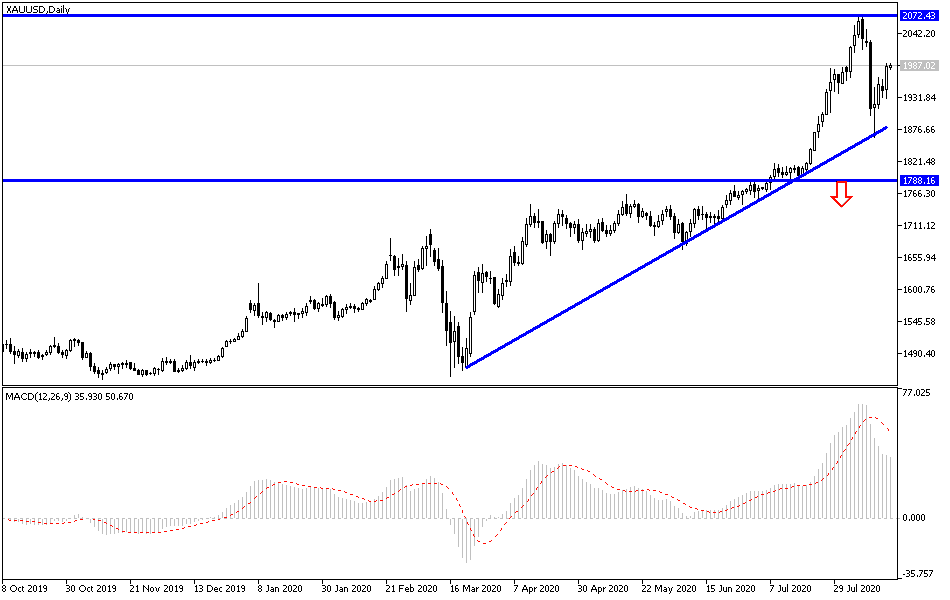 According to the technical analysis of gold: The bullish momentum of the gold price continues to increase and the best opportunity now is to retest the $2000 historical resistance, which may pave the way again to test new record levels. After the recent shift, we confirm that the stability of the gold price below the $1900 support is the most important for the possibility of a real and strong breakout of the current bullish trend. With the persistence of global geopolitical tensions and the Coronavirus, buying gold at every lower level will remain the best trading strategy.