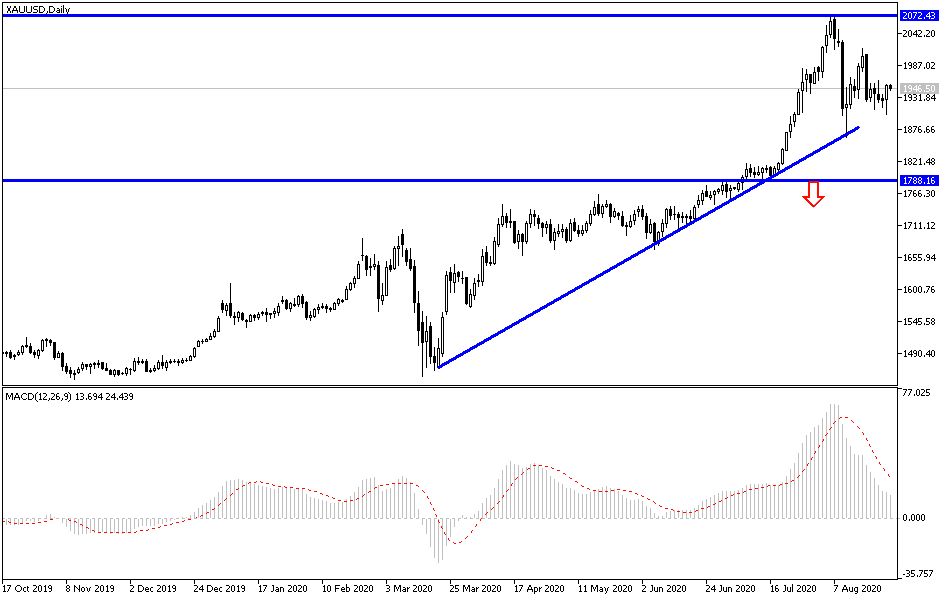 In light of the USD weakness, the opportunity was better for gold and silver futures to move towards its highest closing level in a week, while markets are cautiously awaiting the content of Federal Reserve Chairman Jerome Powell's speech at the Jackson Hole symposium, the most important economic summit that may have a strong effect on gold prices. The price of gold rose to $1955 an ounce after selling that pushed it at the beginning of yesterday's trading session to the $1903 an ounce. This performance confirms the strength of our expectations to buy gold from every descending level, as indicated in the recent technical analyses.