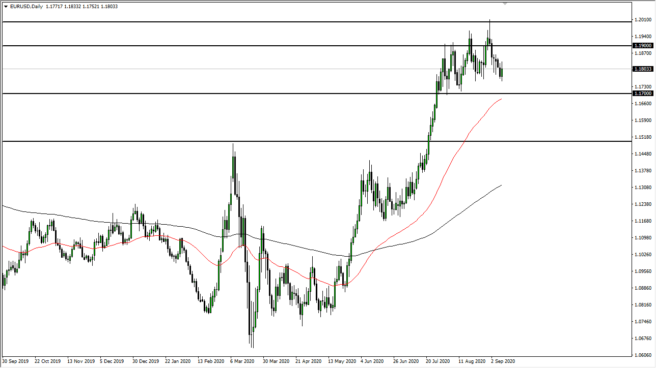 If we do fall back down, and that is very possible because let us be honest here: the ECB wants the Euro to go lower. The economic conditions in the European Union have been deteriorating as of late, so that could have the market reaching towards lower levels as well. The 1.17 level underneath would be massive in its importance, not only do to the large, round, psychological importance of the handle, but also that the 50 day EMA is sitting in that area. With all that being said, the market is likely to see a lot of interest in this area, and therefore I think it is going to take quite a bit of negativity to breakthrough here. If we do break down below the 1.17 level, then it is likely that we go down towards the 1.15 level underneath. That is an area that obviously is crucial from a longer-term standpoint based upon psychology and was an area where we had seen a massive breakout. The Euro is being very choppy but that is nothing new as it is one of the choppier and noisier currency pairs to trade.