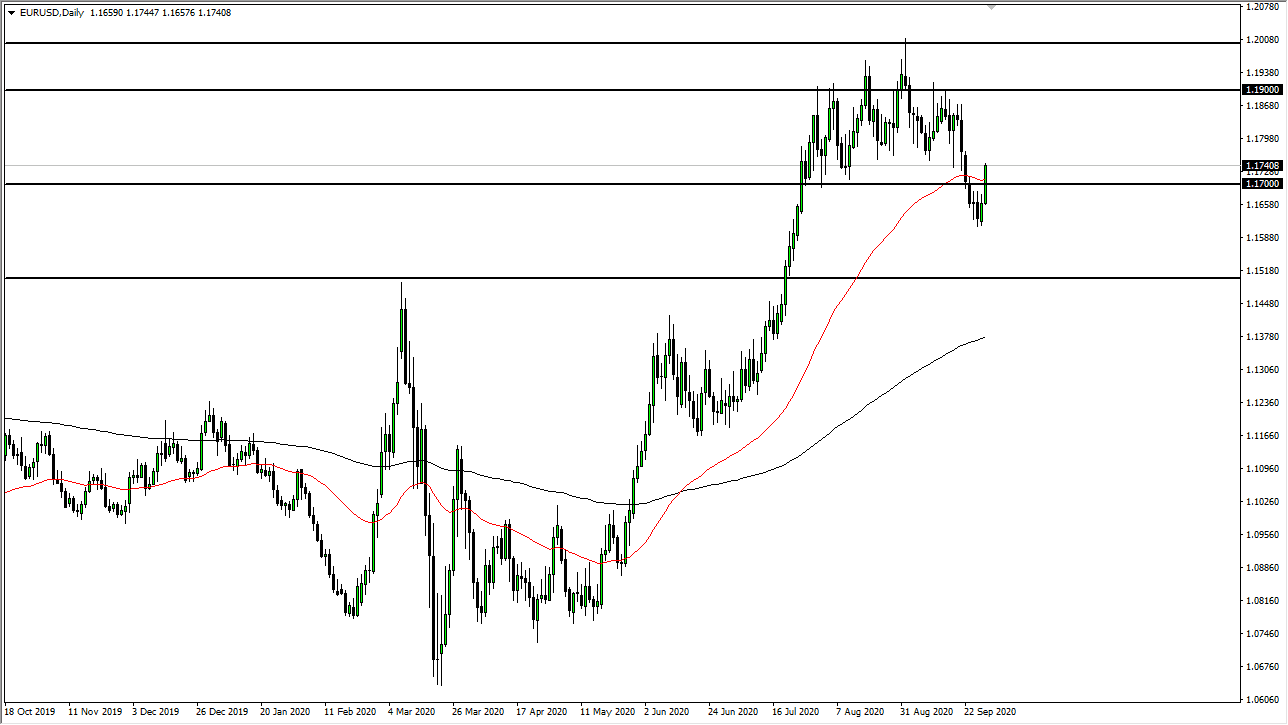The European Union has seen a rise in coronavirus figures, and that does not help the economic outlook of the continent. Beyond that, the European Union has to deal with Brexit, and nobody really knows how that is going to turn out. During the trading session on Tuesday, we got wind that Germany believes that a significant EU coronavirus relief package may take longer than anticipated. That caused a little bit of short-term selling in the Euro, but at the end of the day we still rallied. At this point, the market is going to be asking a lot of questions about the Euro and perhaps even more importantly the US dollar. What is interesting is that a lot of people are trading the US dollar-based upon the Federal Reserve and quantitative easing, but at the same time we see the bond markets telling us that the US dollar is not going to lose massive amounts of value.