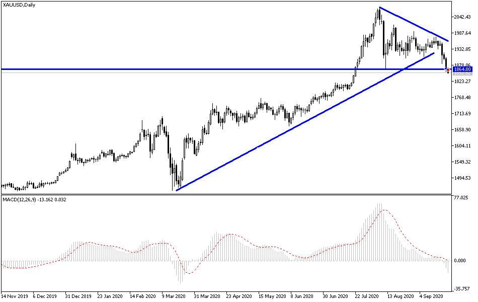 According to the technical analysis of gold: The recent sales operations contributed to gold forming a descending channel opposite to the movement of the metal throughout 2020, which is the most exciting year for gold investors, as it moved to a new historical and record top that exceeded $2000 an ounce, and the effects of the Coronavirus were the most important factor to achieve these gains. Despite the recent sales, the factors behind the return of record gold gains still exist, as the US-China conflict has not stopped, and the outbreak of the epidemic continues and may increase in the coming days, and stimulus on the part of global central banks and governments did not stop. US political anxiety is possible, and along with that is the bleak future of Brexit. Therefore, the support levels at 1849, 1838 and 1820, respectively, may be the most appropriate buying areas at present. I still prefer to buy gold from every lower level.