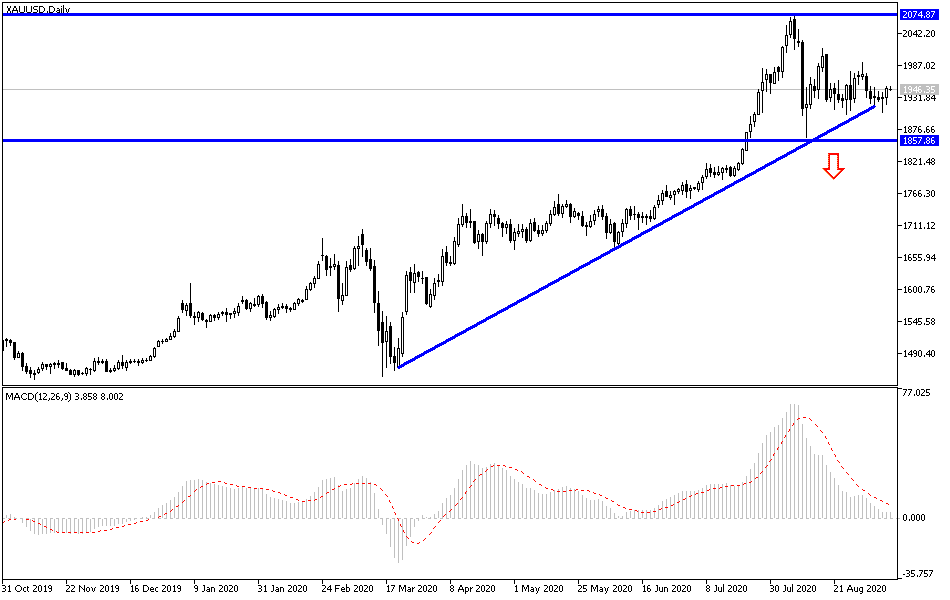According to the technical analysis of gold: There is no change in my technical view towards the price of gold, as the general trend is still bullish as long as it is stable above the 1900 resistance, and after current gains, the bulls have gained control and they have the opportunity now to move towards higher resistance levels, the closest of which are currently 1963, 1980, and 2010, respectively. In general, I still prefer to buy gold from every lower level and the closest ones are now 1937, 1920, and 1900, respectively. Whereas, the continuously troubled relations between the United States of America and China, and the devastating effects of the Coronavirus will remain constant factors to support gold gains for a longer period.