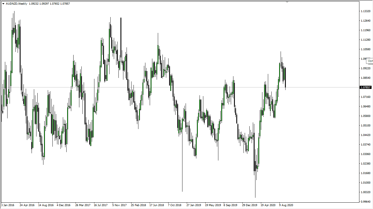 The Australian dollar has plummeted against the New Zealand dollar during the course of the week, breaking the ¥108 level to the downside. Ultimately, this is a market that had gotten a bit ahead of itself, but it still looks relatively well supported underneath. I think it is likely that we will see a bit of a bounce here, so look for supportive actions underneath, and when you look at both of these currencies against the US dollar, the Aussie dollar certainly looks stronger so it is a relative strength play at this point. Given enough time, I believe that we will find buyers later this week in this pair.
