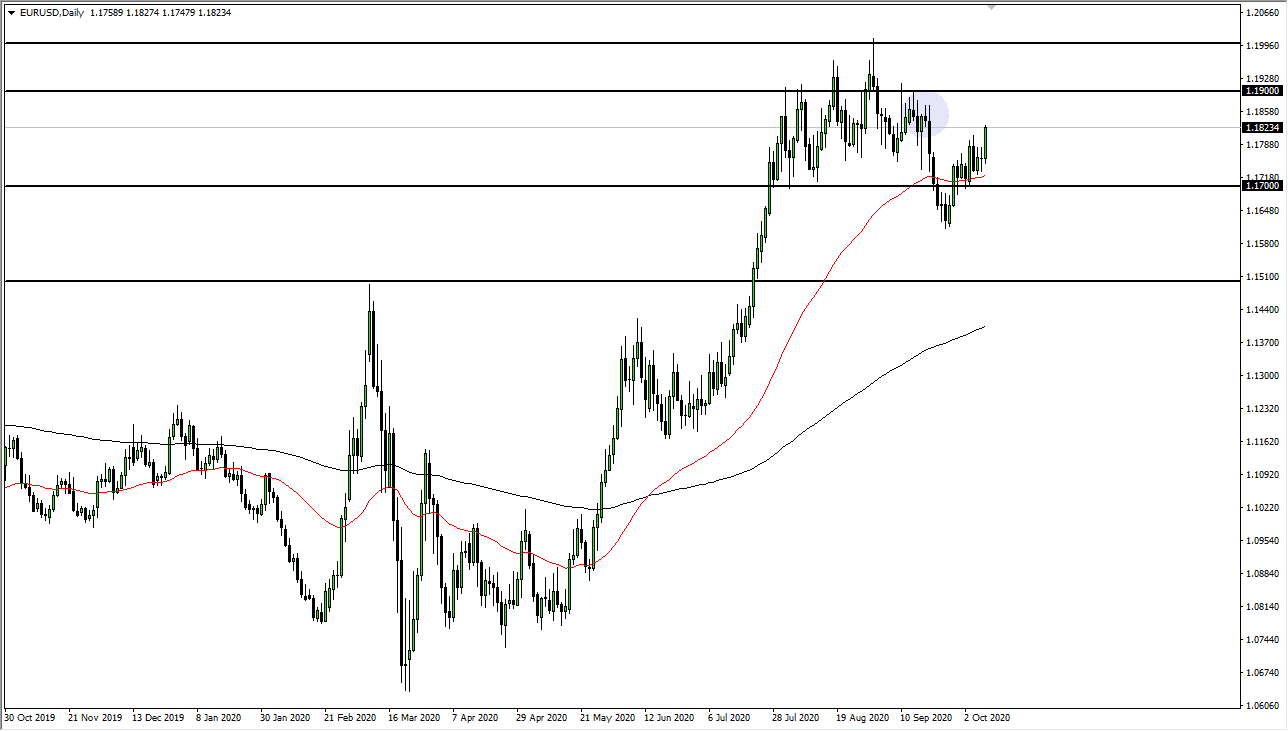 The Euro shot higher during the trading session on Friday, as we continue to trade based upon the idea of the stimulus. The stimulus situation is hijacking the entire market, and it should be noted right now that it is the only thing that people are focusing on. However, there is a lot more out there going on with the Euro right now then just stimulus in the United States, as the deflationary figures in Germany continue to weigh upon the idea of recovery. Furthermore, we have seen signs that the European Union is likely to lock down quite a bit due to the coronavirus, with Spain going as far as declaring Madrid a disaster zone.