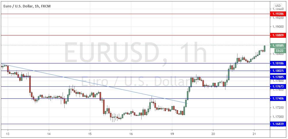 Yesterday’s signals produced a nicely profitable long trade from the bullish rejection of the support level identified at 1.1767 right at the start of yesterday’s London session. The price is still advancing at the time of writing, so it is probably wise to try to hold on to any part of this trade that remains open.