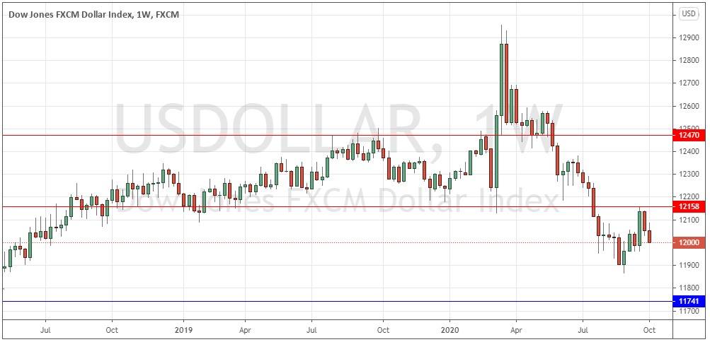 The weekly price chart below shows the U.S. Dollar index printed another bearish candlestick. It closed right on the low of its range, which is a bearish sign, and there is a long-term bearish trend, as the price is lower than it was both 3 and 6 months ago. Overall, next week’s price movement in the U.S. Dollar looks likely to be downwards due to the prevalent trend and other bearish signs.