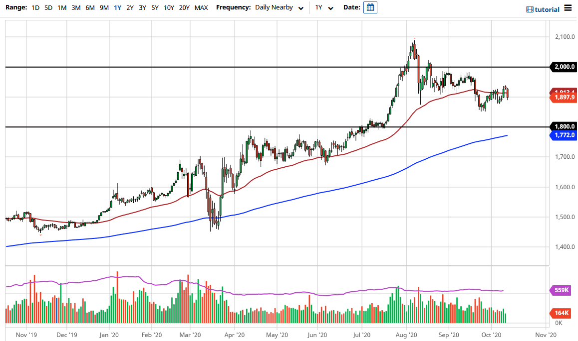 All of that being said it is very unlikely that the market participants would be able to hang on below that area, especially as the 200 day EMA is reaching towards that region. I think that the $1800 region would be an excellent opportunity to pick up value. I do not know that we get down there, but if that is the case, I would be very aggressive. To the upside, I believe that the $1975 level would be a target where there has been a lot of supply, with quite a bit of resistance extending all the way to the $2000 handle. Breaking above there of course allows the market to go much higher, offering the possibility of a huge run higher.