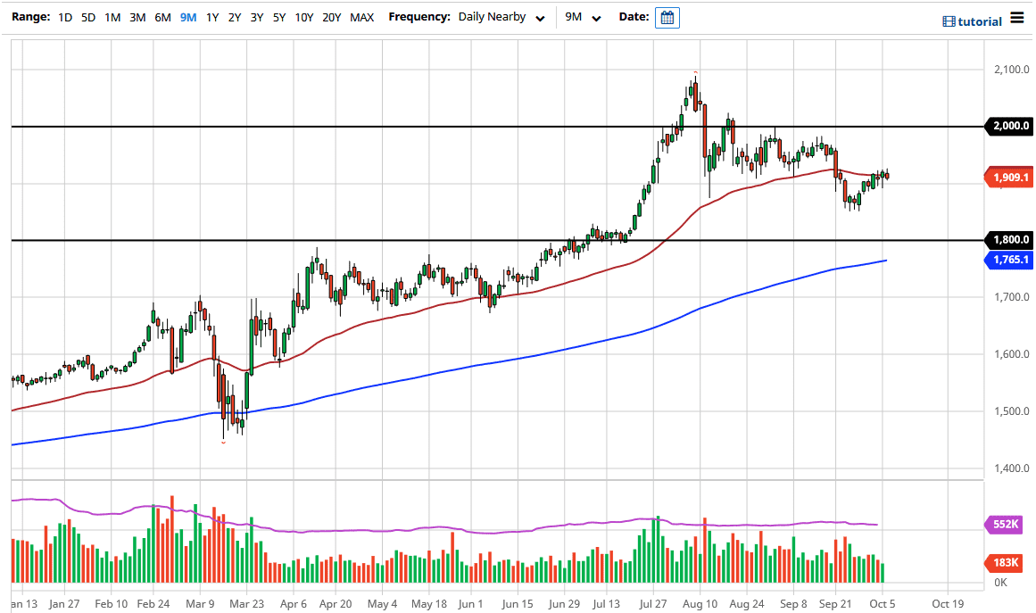Gold markets have initially tried to rally during the trading session on Tuesday only to turn around and show negativity. The market looks as if it is ready to test $1900, which is a large, round, psychologically significant figure. That also has people thinking that perhaps the market could break down a bit further, especially considering that there is such a high negative correlation between gold and the US dollar.