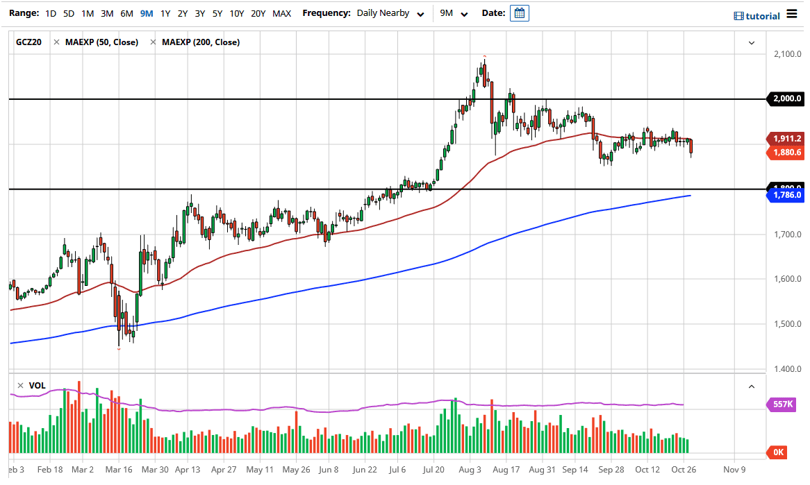To the downside, I believe that the $1850 level will offer a significant amount of support, due to the fact that it was the scene where we had rallied from last time. If we break down below there, then the markets likely to go down towards the $1500 level, an area that I think is worth paying attention to due to the fact it is where we broke out of previously, which of course needs to be retested. Furthermore, the 200 day EMA sits just below the $1800 level as well, so that will continue to add even more support. I think it is only a matter of time before buyers jump in and pick this market up, and therefore I have no interest in shorting but I am looking for an opportunity to pick up a little bit of value if and when it shows up. In fact, I have no interest whatsoever in trying to short this market, because I think the longer-term momentum is certainly with the buyers, but I do recognize that the short-term correlation been negative between the US dollar and gold could continue to put a little bit of downward pressure in the market. All things being equal, I do think that we end up going back to the $2000 level, but we obviously have some base building to do first.