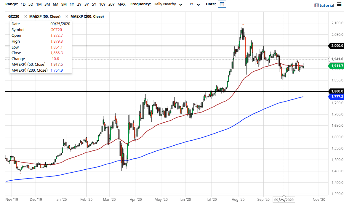 The gold markets initially rallied during the trading session on Monday to kick off the week, as the US dollar got sold off in Asian trading. Having said that, we broke above the 50 day EMA as a result, only to turn around and form a bit of a shooting star. The shooting star sitting on top of the $1900 level is more than likely going to mean something, if for no other reason than the fact that it is sitting at a large, round, psychologically significant figure.