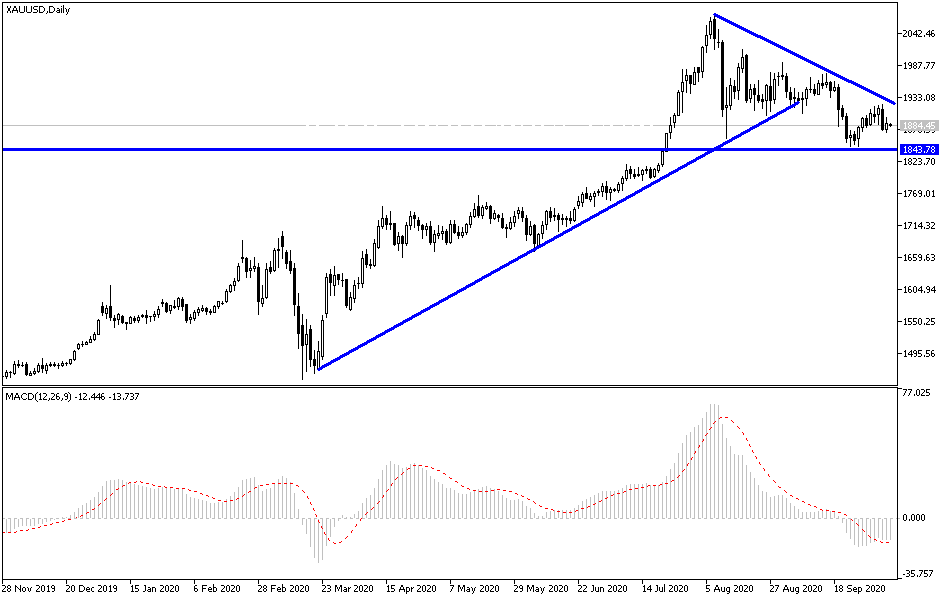 According to the technical analysis of gold: I still see that the recent decline in gold prices is an opportunity to think about buying the yellow metal again, as it is historically still a safe haven for investors in times of uncertainty, which has increased with the outbreak of the Corona epidemic since the beginning of the year 2020. Accordingly, support levels 1875, 1860 and 1845 will be the most appropriate ones for buying gold at the present time. On the upside, stability above the $1900 resistance will provoke buying again, as the general trend on the long term for gold is still bullish, amidst clear bearish momentum in the near and medium term.