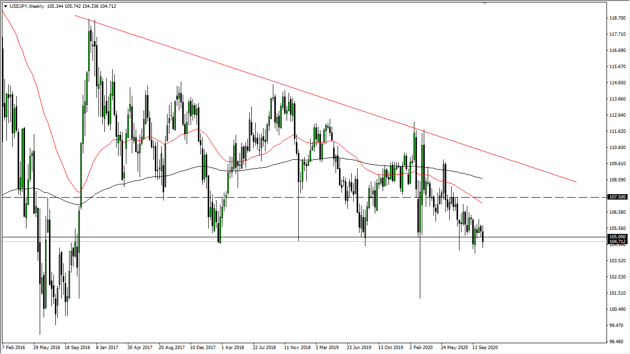 The US dollar initially tried to rally during the trading week, but then broke down rather significantly on Wednesday. At this point, more negative pressure is probably coming towards as a pair, and I think that short-term rallies are going to be faded. If we break down below the ¥104 level, then it is likely that we go down to the ¥102 level. At this point in time, the market is likely to see a descending triangle with a measured move down towards the ¥102 level. That was the most recent low, and where we had seen a lot of buying. I continue to fade rallies and I think that eventually, we could break down.
