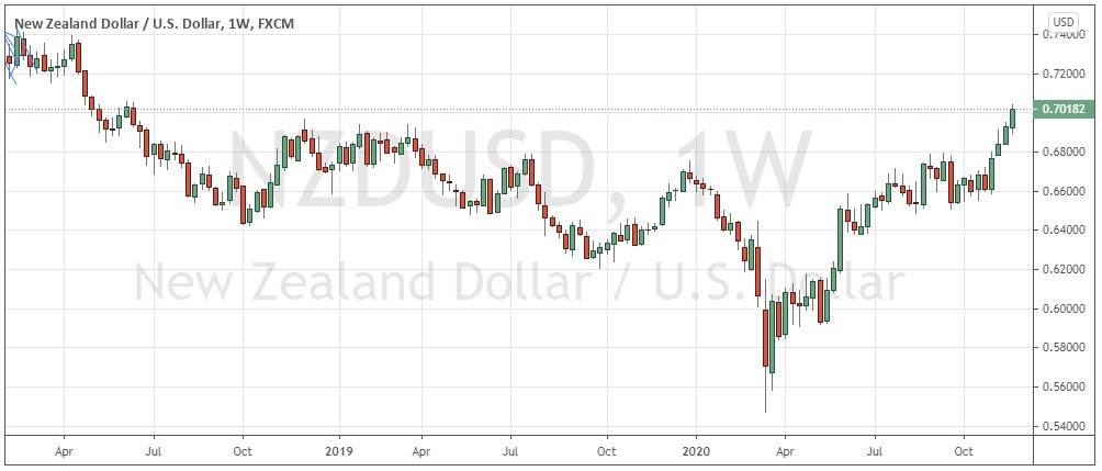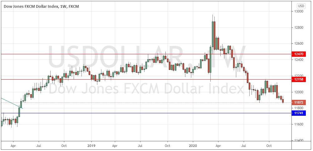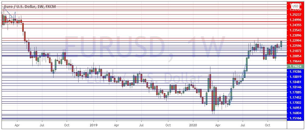 Last week saw somewhat higher volatility in the Forex market, although there was very little news and no surprising economic data releases. We are seeing the U.S. dollar continue to weaken while the commodity currencies (AUD, NZD, and CAD) are strong and continue to advance. The EUR/USD currency pair made its highest New York close on Friday in more than 2 years, moving upwards in a firm bullish trend. President Trump is still refusing to concede the Presidential election but there seems to be no real chance that any of his legal challenges will succeed in changing any of the results so the electoral college seems set to confirm Joe Biden as President on 14th December. It is no longer possible to bet on Biden becoming the next U.S. President.