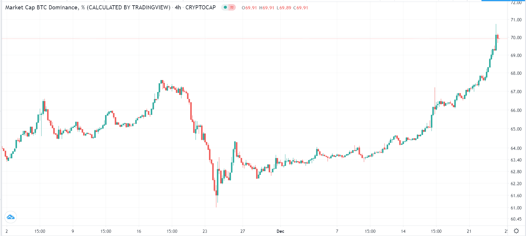 The regulator says that Ripple offered a security without following the legal process. As a result, many Ripple investors have shifted their resources to other digital currencies, including BTC and ETH. Indeed, its price has dropped by more than 67% in the past few days. At the same time, as shown below, Bitcoin dominance has rallied to its all-time high.