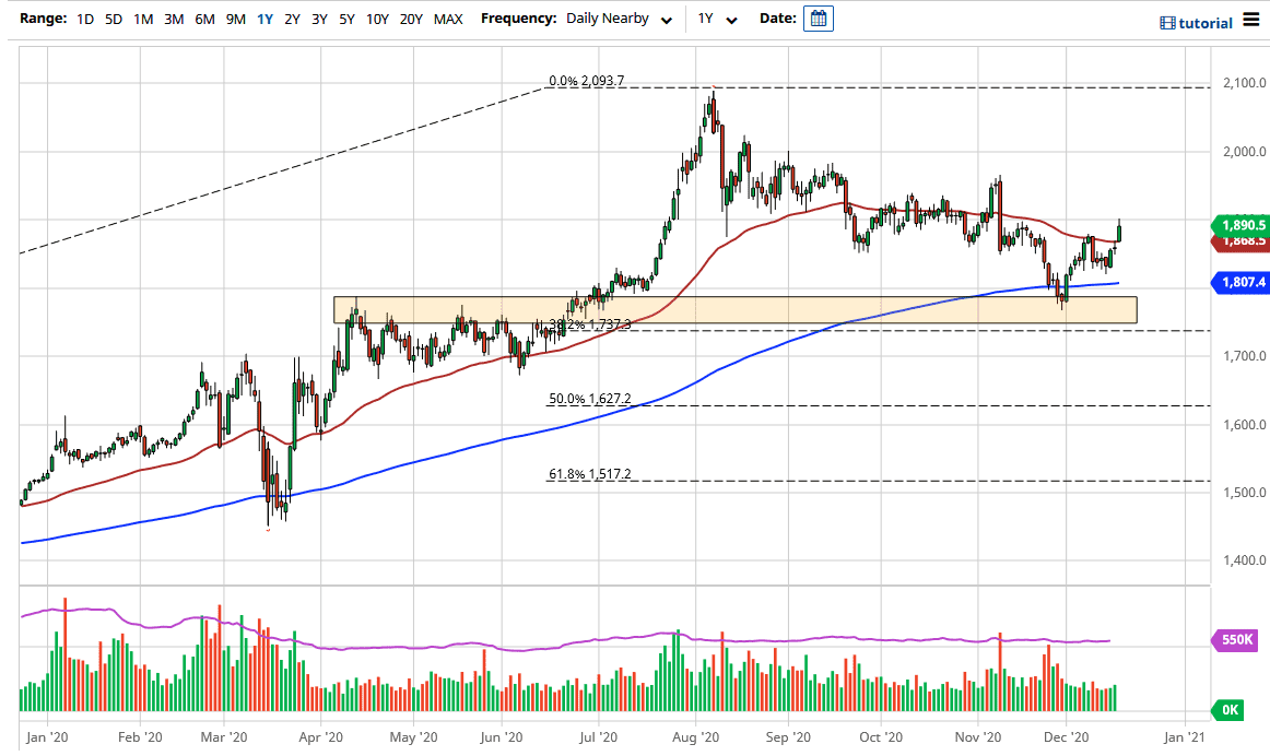 Gold markets rallied significantly during the trading session on Thursday, reaching towards the $1900 level before pulling back.