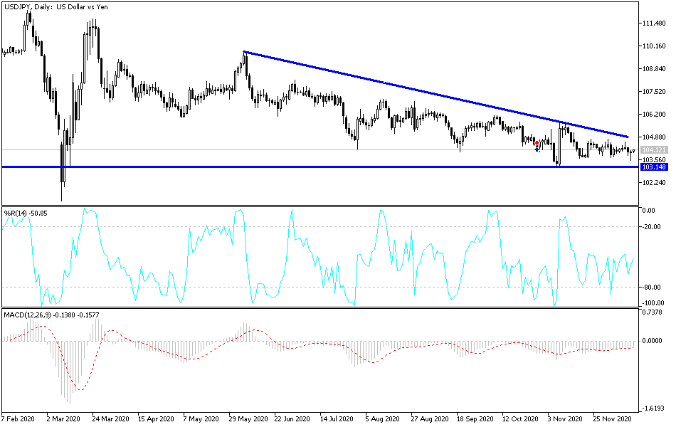Despite official US approval for distribution of the Pfizer vaccine, the USD/JPY continued its downward path at the beginning of this week's trading. The pair reached the 103.51 support, its lowest in over a month, before settling around 104.10 at the time of writing. The bears' performance is still the strongest. The performance of the US dollar may remain as is until the decisions of the US Federal Reserve meeting on Wednesday are announced.