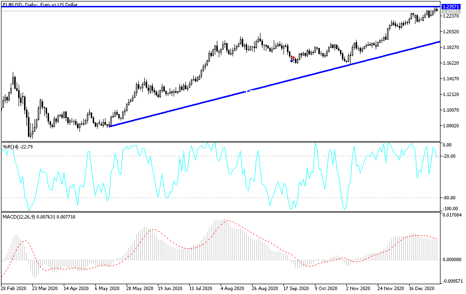 In the long term, and according to the performance on the daily chart, it appears that the EUR/USD is trading within the formation of a sharp upward channel, which indicates a strong long-term bullish momentum in market sentiment. The pair continues to trade near the overbought levels of the 14-day RSI. Accordingly, the bulls will look to support the current bullish trend by targeting profits around 1.2413 or higher at 1.2554. On the other hand, bears will be looking to pounce on earnings around 1.2096 or lower at 1.1923.