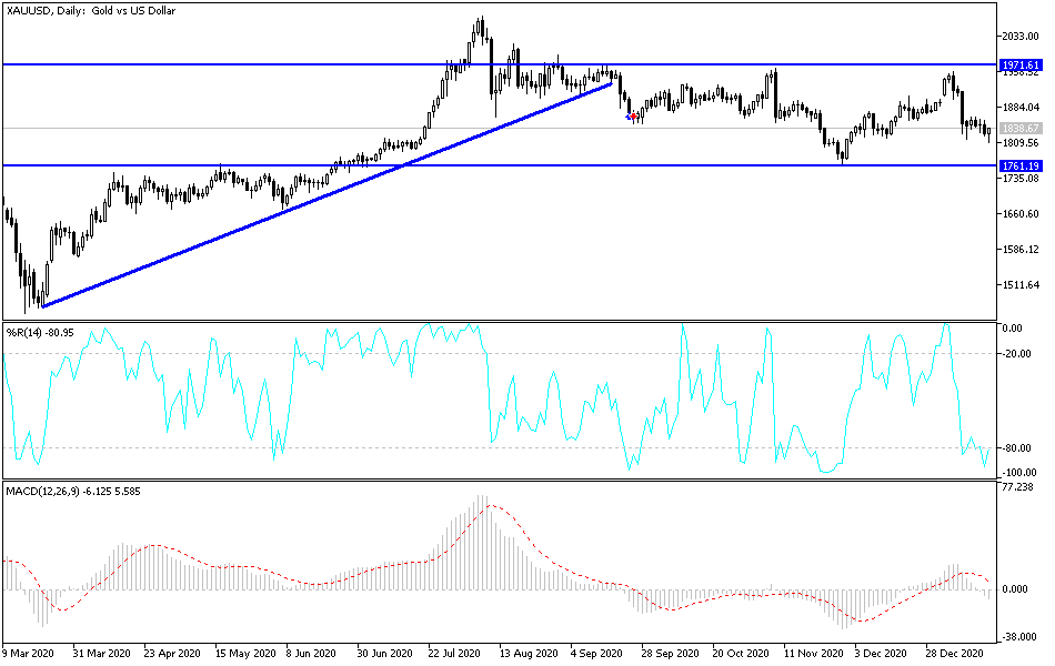 According to the performance on the daily chart, gold has abandoned its ascending channel, which had brought it towards the resistance level of $1960 an ounce. After recent sell-offs, the strongest and important support and buying levels are currently $1810, $1785 and $1760. I still prefer to buy gold from every dip. Concern about the coronavirus and its gloomy impact on the global economy, despite the arrival of vaccines, will support the return of investors' appetite for buying goldas a safe haven. On the upside, I still see that the level of psychological resistance at $1900 is the most important for the bulls to control the general trend again.