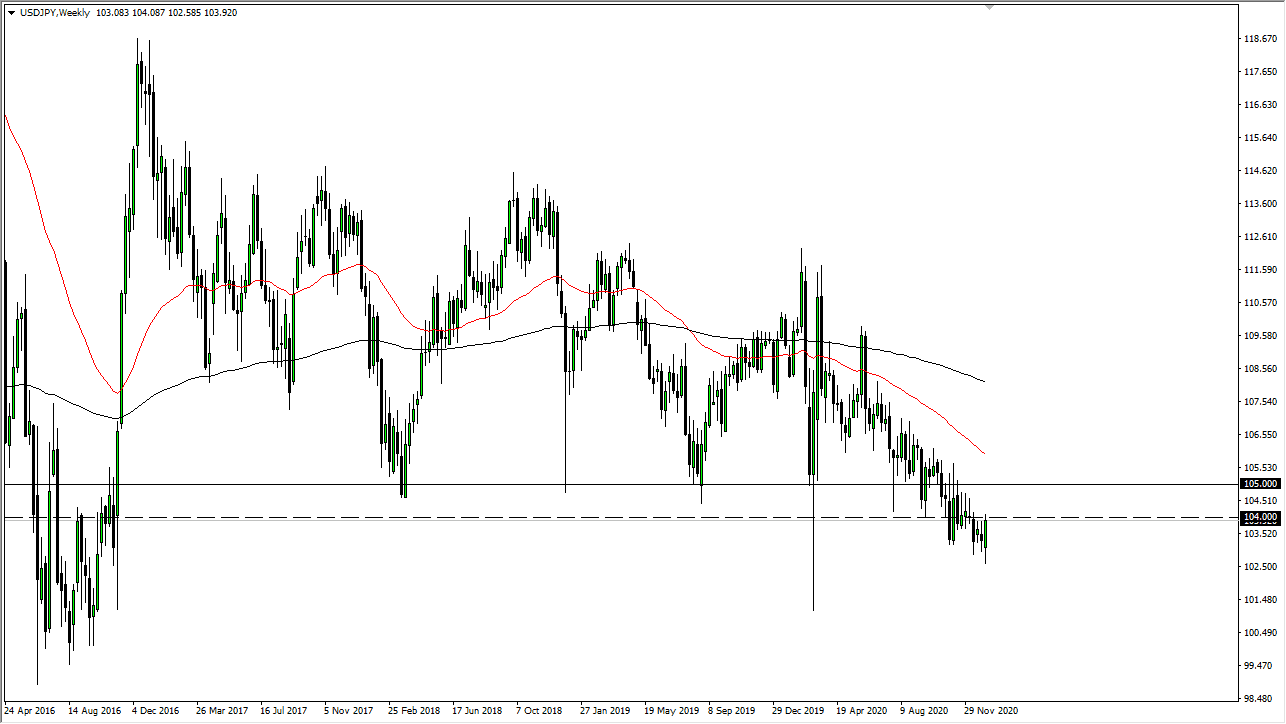 The US dollar initially fell against the Japanese yen during the course of the week, only to turn around and reach towards the ¥104 level. This is an area in which we have seen a significant amount of resistance, and that resistance extends all the way to at least the ¥105 level. It is because of this that I think rallies will continue to be repelled in this range, with short-term traders taking advantage of signs of exhaustion in a market that has been in a downtrend for quite some time.