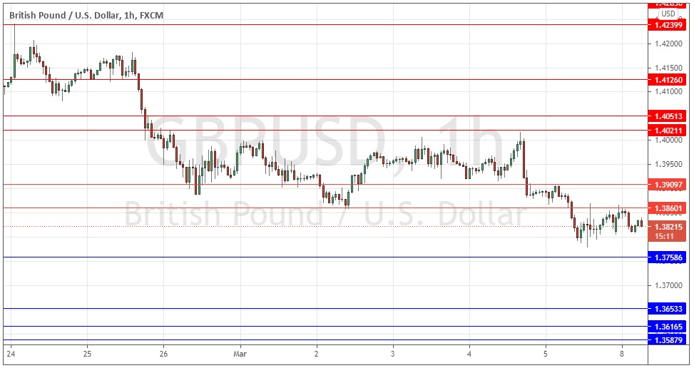 Last Wednesday’s GBP/USD signals were not triggered, as there was insufficiently bullish price action when the support level at 1.3942 was first reached.