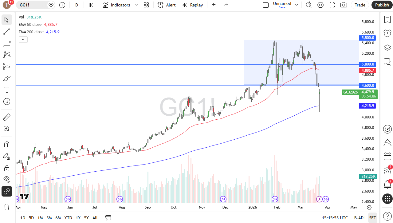 Ultimately, I think it is still up to gold to prove itself as being strong and right now I just don't believe it, but recapturing the $4,600 level would be the beginning of something that I think could send gold towards the $5,000 level. Unfortunately, this is all about the latest rumor and the latest tweet, so best of luck.