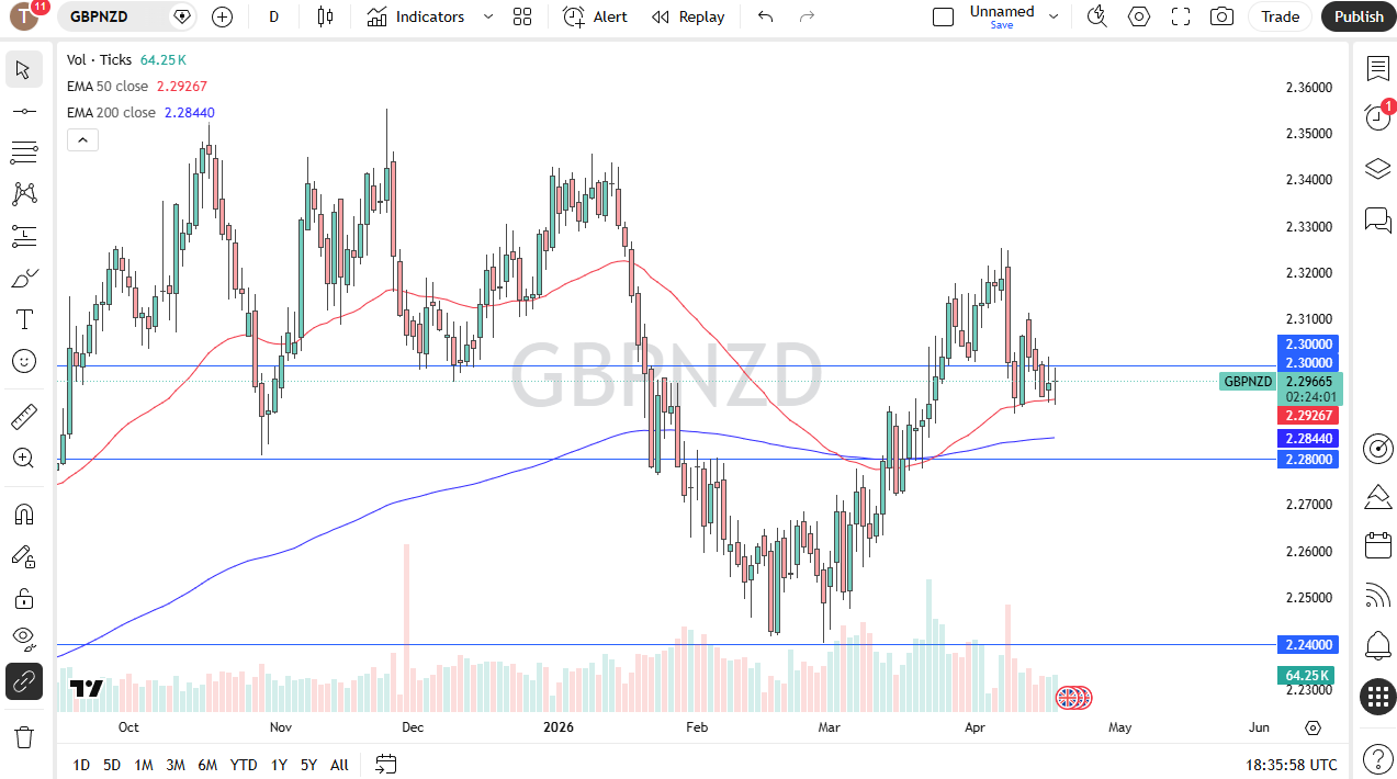 The British pound has gone back and forth against the New Zealand dollar on Friday as we continue to dance around just below the 2.30 level and just above the crucial 50-day EMA. We had recently seen a huge surge higher by the British pound, but the last 2 weeks or so has been a bit of a pullback.